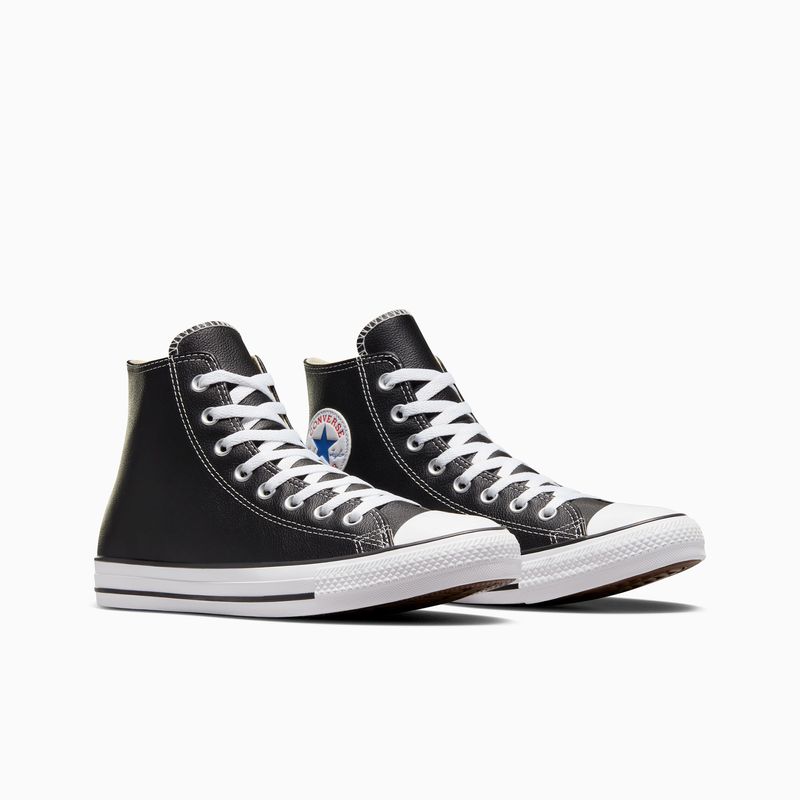 Las zapatillas Converse Chuck Taylor All Star en piel cuentan con un toque de piel texturizada en la parte superior de las sneakers altas más legendarias del mundo. El clásico parche del tobillo con la estrella en el centro, la suela de caucho vulcanizado, los ojales de metal cepillado, la puntera de goma reforzada, la plantilla acolchada y la autenticidad cultural permanecen intactos.