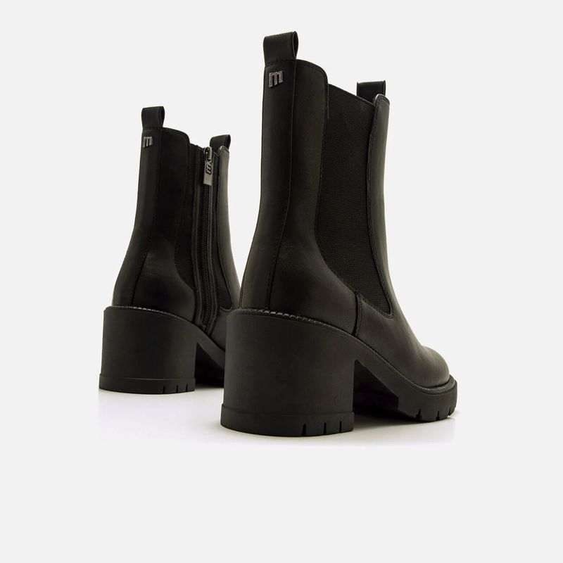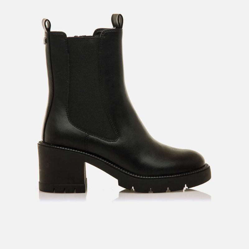 Botines Mustang Praga para mujer en color negro, diseñados para comodidad y versatilidad. Este modelo combina paneles elásticos laterales con un práctico cierre de cremallera, que permite un calce rápido y seguro. El tacón ancho de altura media junto con la suela dentada garantizan estabilidad y un toque moderno. Perfectos para complementar cualquier look, estos botines se convertirán en un básico imprescindible en tu armario.
