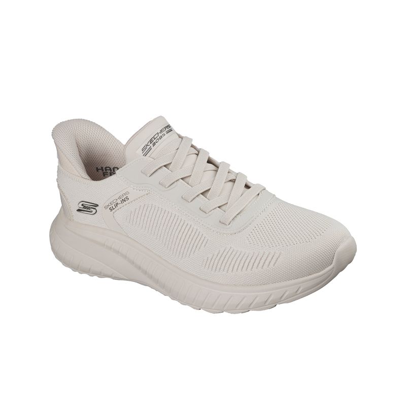 Adéntrate en el estilo deportivo y la comodidad de Skechers Hands Free Slip-ins®: BOBS Sport™ Squad Chaos - Solid Step. Diseñado con nuestra exclusiva Heel Pillow™, este modelo deportivo vegano presenta una parte superior de knit técnico con cordones elásticos y una plantilla con amortiguación Skechers Memory Foam™.