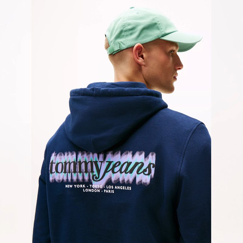Logo de Tommy Jeans en fuente Script en la parte trasera y el pecho